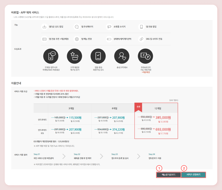 : 버튼 클릭시 바로앱 설치 가이드를 다운받을 수 있습니다