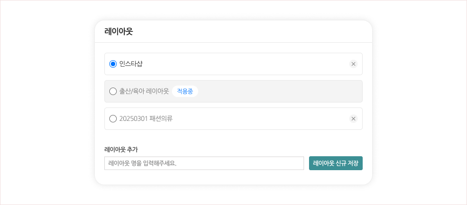 - ∘ 설정 된 영역에 마우스 오버 시 [수정][삭제] 버튼이 노출됩니다.