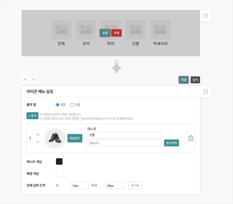 - ∘ 수정 후 [저장] 버튼을 누르셔야 설정된 내용이 적용됩니다.