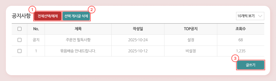 : 공지사항 글쓰기 페이지로 이동합니다.